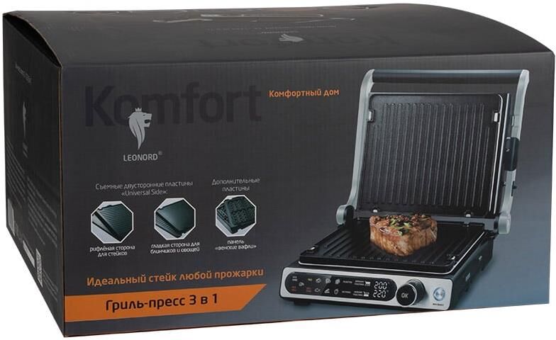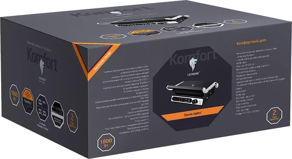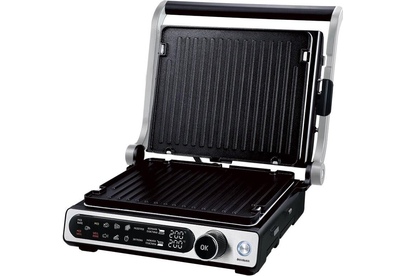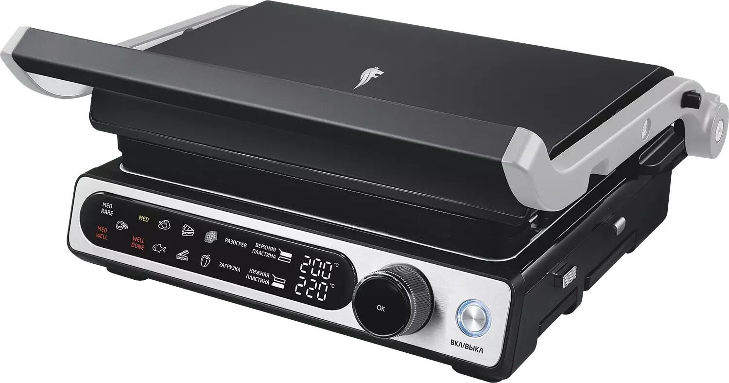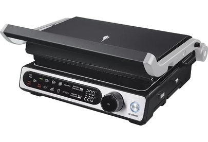 Мощность 1800 Вт Съемные двусторонние пластины "Universal Side": - рифлёная для стейков - гладкая для блинчиков и овощей Дополнительные пластины для выпекания вафель Размер пластин 28*23,5 см Сверхпрочное антипригарное покрытие TouchPro 7 10 автоматических программ 4 степени прожарки стейков Ручной режим Отдельная регулировка температуры для верхней и нижней пластины Максимальная температура нагрева пластин 230 градусов Дисплей Кнопка управления Поддон для cбора жира Режим Барбекю - раскрытие на 180 градусов Защита от перегрева 2 года гарантии Пластины можно мыть в посудомоечной машине Вертикальное хранение Напряжение: 220-240 В, 50-60 Гц Гарантия 2 года