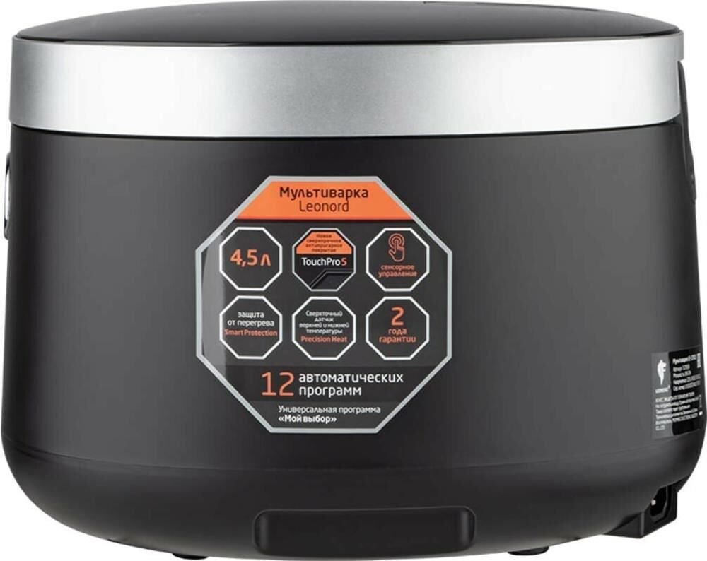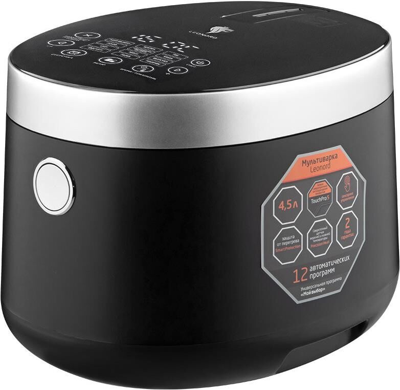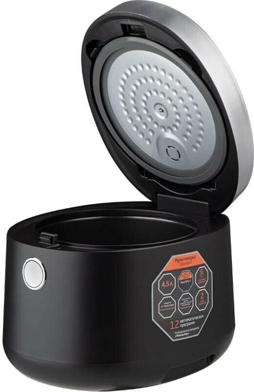 Мощность 860 Вт Обьем чаши 4,5 л Чаша с антипригарным покрытием Touch Pro 5 Пластиковый корпус Сенсорное управление LED дисплей 12 программ приготовления Датчик Precision Heat верхней и нижней температуры Съемная внутренняя крышка для удобной чистки Система защиты от перегрева Smart Protection В комплекте: контейнер-пароварка, мерный стакан, лопатка и ложка Длина шнура 120 см Гарантия 2 года
