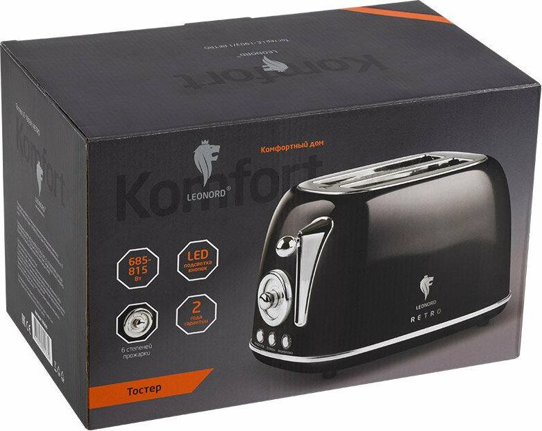 Серия RETRO Мощность: 685-815 Вт 2 широких слота для хлеба 120*120*38мм 6 степеней прожарки Автоматический подъем готового хлеба Поддон для крошек Функция центрирования Функция разморозки Функция разогрева Кнопка отмены выбранного режима LED подсветка кнопок Гарантия 2 года Цвет: чёрный