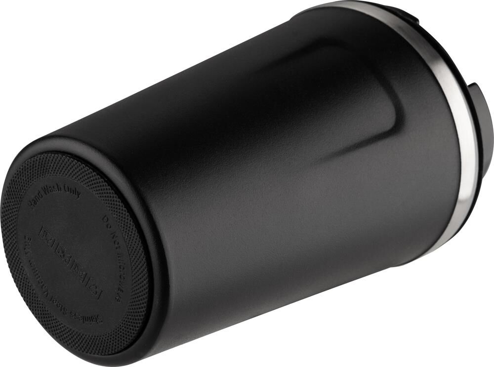 Термокружка сохраняет необходимую температуру напитков длительное время. Объем: 380 мл Размер: 9*15 см Преимущества: - Герметичность. Наличие плотно прилегающей крышки препятствует разбрызгиванию. - Противоскользящее основание. - Отверстие для питья и выхода пара с плотно закрывающейся крышкой - Экологичность материалов, которые не несут вреда для людей и окружающей среды. - Двойная теплоизоляция, которая гарантирует стабильное поддержание необходимой температуры жидкости. - Долговечность. Использование прочных материалов, устойчивых к коррозии, гарантирует долгий срок эксплуатации. Материал: нержавеющая сталь (304 внутри, 201 снаружи), элементы из пластика, силикона Цвет: черный