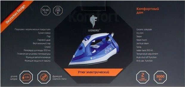 LEONORD Утюг Leonord LE-1801 бело-синий (3000Вт, пар, спрей, пар. удар, самооч.,керамическая подошва