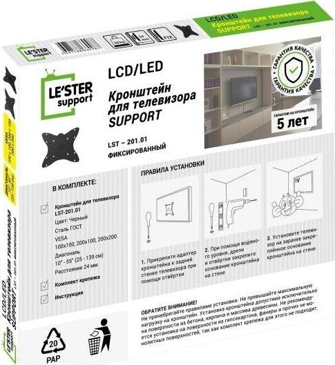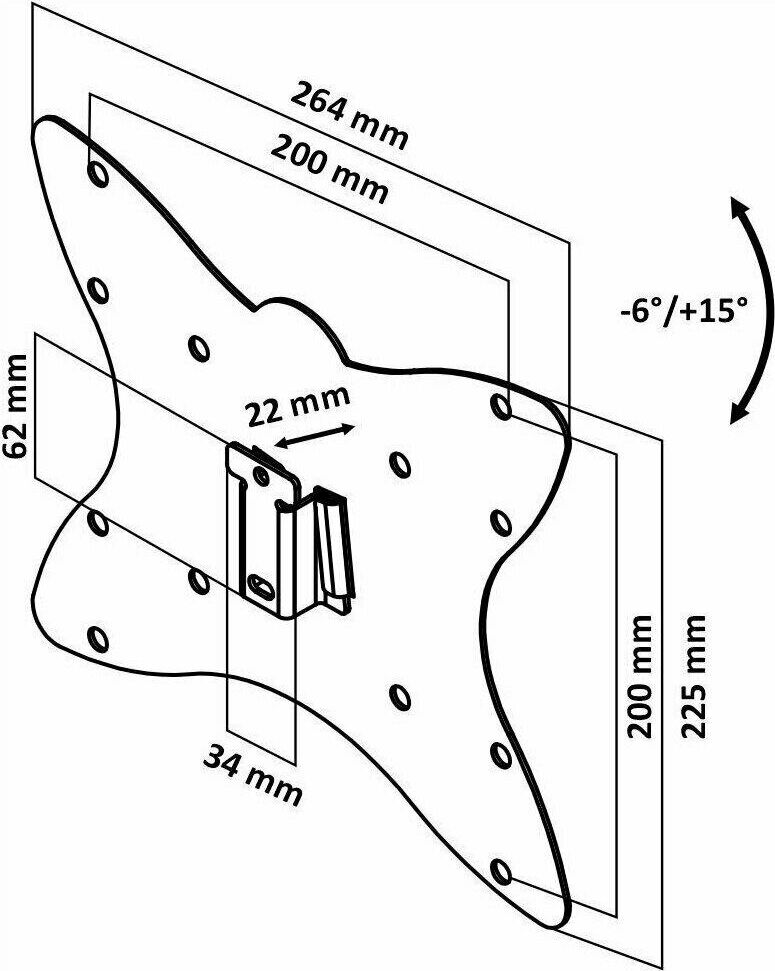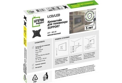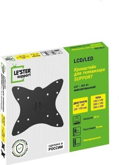 Фиксированный Диагональ: 10"-55" (25-139см) Расстояние от стены: 24 мм Нагрузка: 25 кг Толщина металла адаптера 1,5 мм, основания 3 мм. Vesa 200*200.