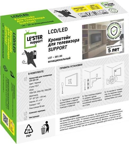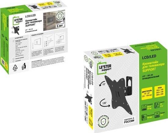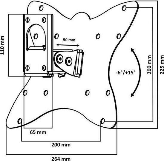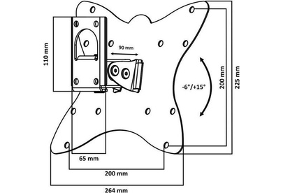 Наклонный-поворотный (Функц) Диагональ: 10"-55" (25-139см) Расстояние от стены: 90 мм Угол наклона: -6°/+18° Угол поворота: 135° Нагрузка: 25 кг Толщина металла адаптера 1,5 мм, основания 3 мм. Регулировка угла наклона и поворота без использования инструмента. Vesa 200*200.