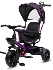 При разработке этого велосипеда мы опирались, прежде всего, на требования родителей, к тому, как должен выглядеть многофункциональный, легкий, комфортный и, главное, безопасный велосипед для детей. • Прочная и легкая стальная рама • Складная крыша колясочного типа с фиксаторами положения, которая очень просто отстегивается • Новая форма пластиковых подножек для малышей, складные подножки «для отдыха», чтобы малышу было более комфортно • Большой практичный багажник для любимых игрушек и мелочей • Подстаканник для детских бутылочек. • Эргономичная родительская ручка управления регулируется по высоте, позволяет с легкостью управлять велосипедом за счет поворота переднего колеса • Комфорт малышей прежде всего - мягкое сиденье лицом к маме и лицом по ходу движения. При желании, сиденье можно снять, сложить и отправиться, взяв велосипед, в путешествие на авто. • 3 угла наклона спинки, максимальный наклон - 150 градусов для максимального комфорта ребенка, чтобы было удобно спать • Разъемный бампер безопасности убере