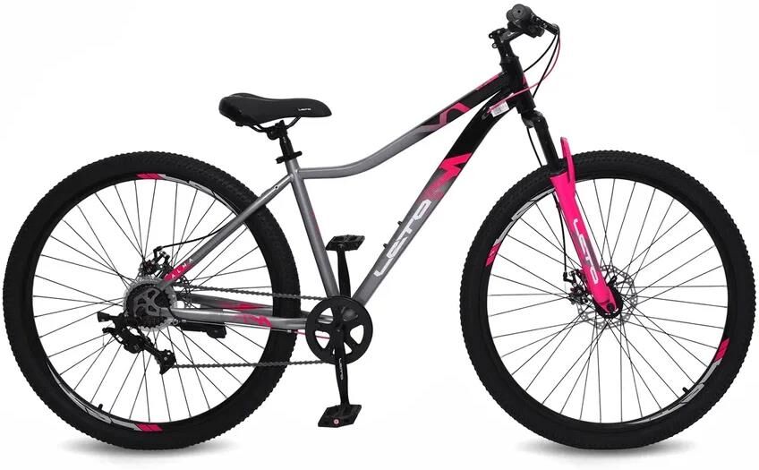 Женский горный велосипед LETO ALMA 29" создан для активных девушек, которые ценят комфорт и надежность. Стальная рама 17" обеспечивает прочность конструкции, а эластомерная амортизационная вилка гасит неровности дороги. Особенности: Трансмиссия: картриджная каретка на промышленных подшипниках, задний переключатель LTWOO 4007-М-2, триггерные манетки на руле — переключение передач плавное и удобное. Передний переключатель отсутствует, что упрощает конструкцию и повышает ее надежность. Тормоза: дисковые (160 мм) — уверенное и безопасное торможение. Колеса: покрышки 29×2.125 дюйма обеспечивают отличное сцепление и проходимость. Дополнительно: пластиковые педали, трещотка 14–28 зубьев, подножка в комплекте.