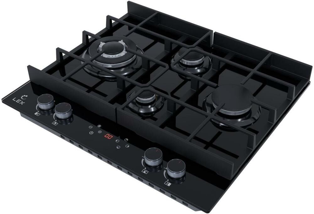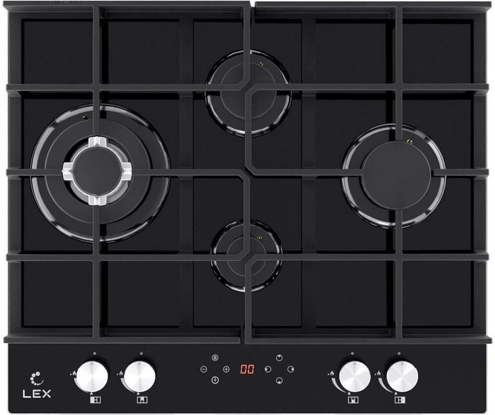 LEX Газовая варочная панель GVG 644 T BL, 4 конфорки, закаленное стекло, черный