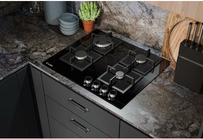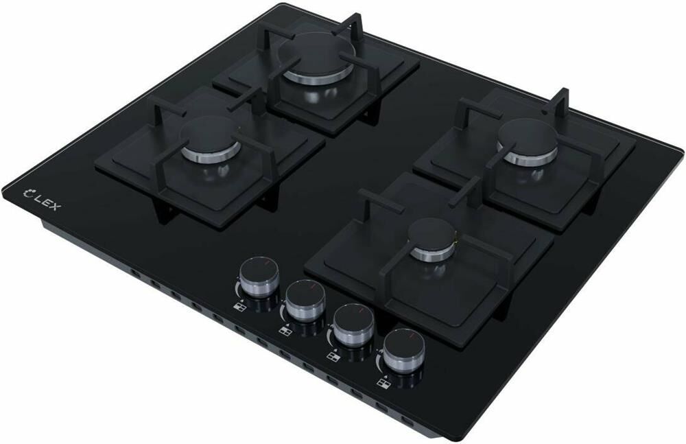 LEX Газовая варочная панель GVG 644A BBL, 4 конфорки, закаленное стекло, черный