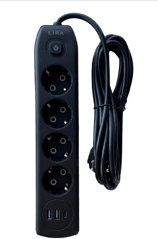 4- местный c/в 2U+TY/2.1A , 3M медь 0.4MM, PP Кабель :3*1m? CCA Цвет-черный