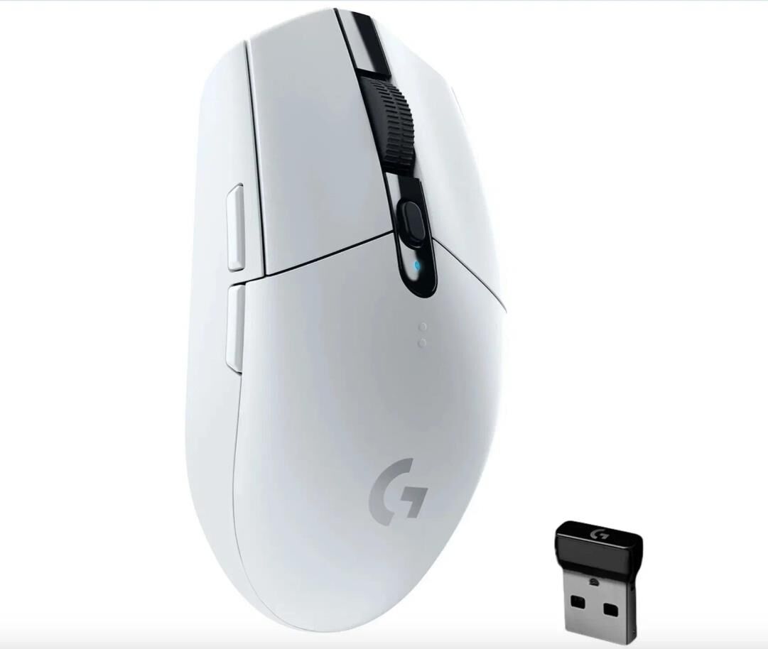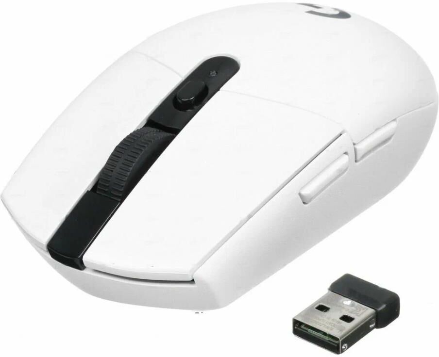 LOGITECH Мышь беспроводная G304 Lightspeed white (USB, 12000dpi, 6but) (910-005294)