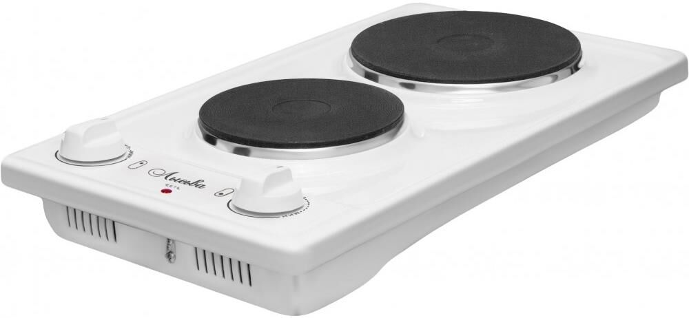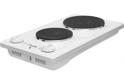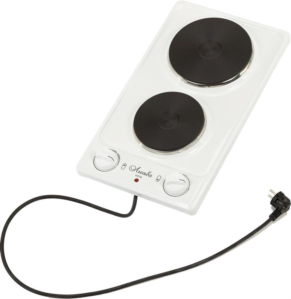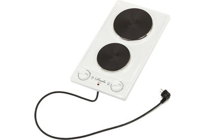 тип конфорок: чугунные, диаметр конфорок 14.5 см и 18 см, мощность конфорок: большой 1.5 кВт, малой 0.7 кВт, бесступенчатые переключатели, имеется индикатор подключения к сети, вес 4,8 кг