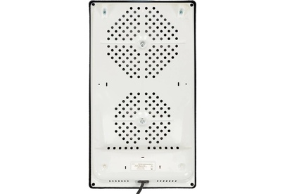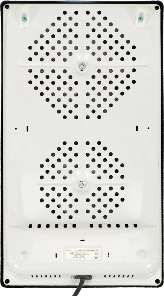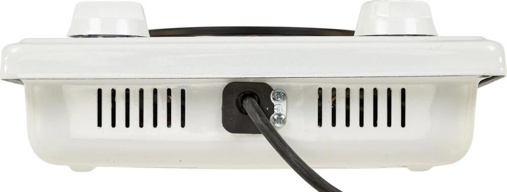 (ШхГхВ) 29х51х10см.Цвет белый.Установленная мощность: 2.2 кВт Масса нетто: 6 кг.Количество конфорок: 2 Мощность передней конфорки: 0.7 кВт (145 мм) Мощность задней конфорки: 1.5 кВт (180 мм) Бесступенчатая регулировка мощности.