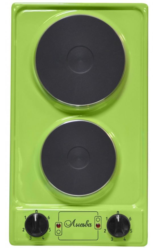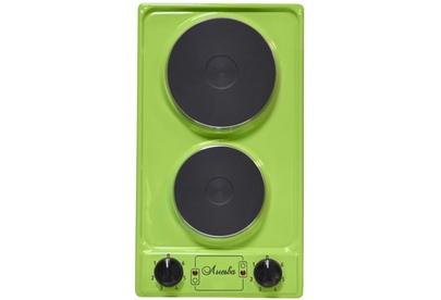 (ШхГхВ)29х51х10см.Цвет зеленое яблоко.Мощность единовременно потребляемая, кВт 2,2.Мощность конфорок, кВт (большой) 1,5.Мощность конфорок, кВт (малой) 0,7.Мощность установленная, кВт 2,2.Ступенчатые переключатели.