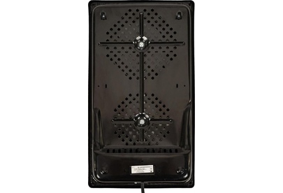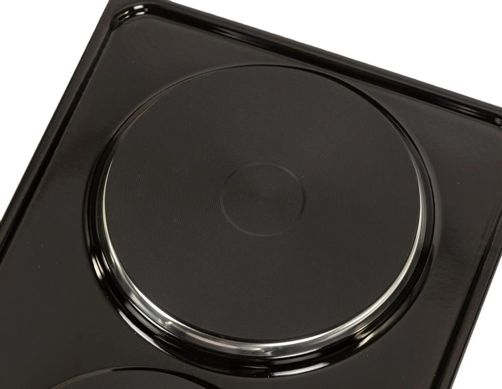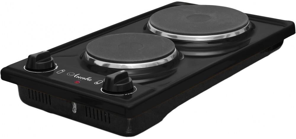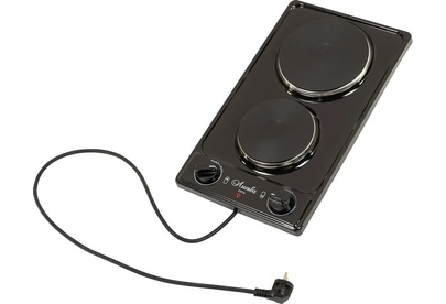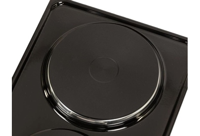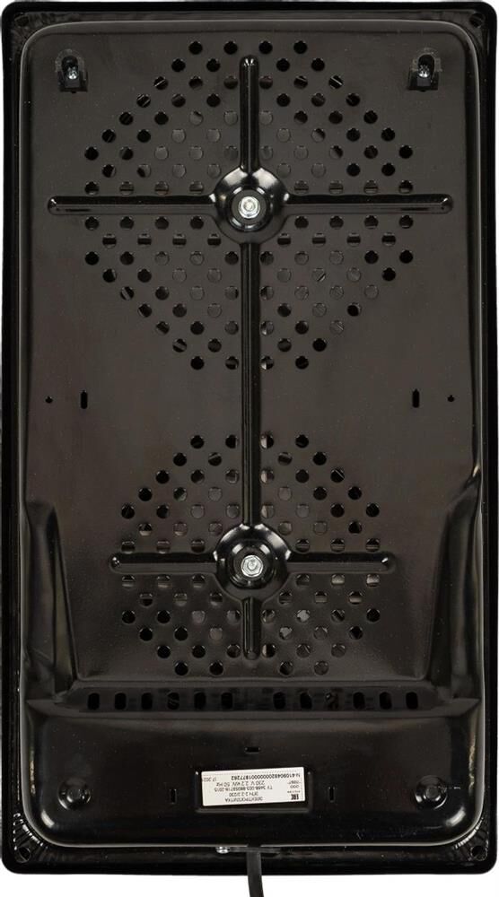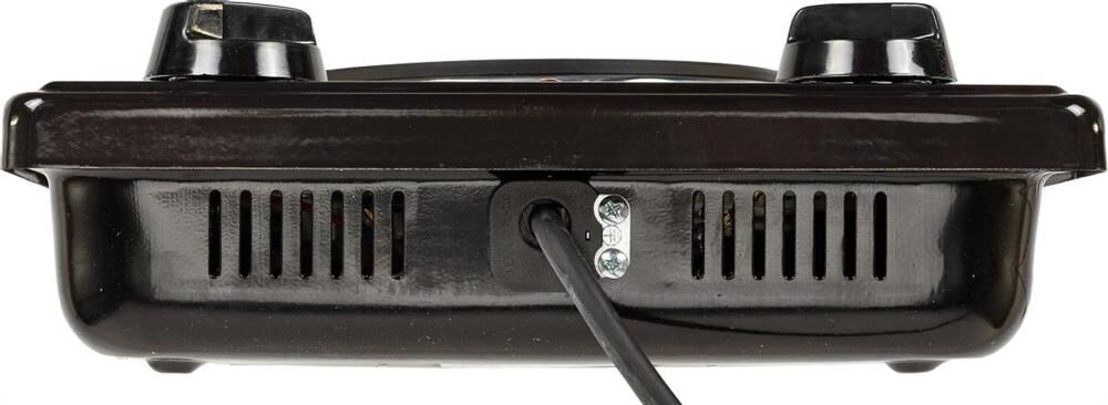(ШхГхВ) 29х51х10 см.Цвет черный.Установленная мощность: 2.2 кВт Масса нетто: 6 кг.Количество конфорок: 2.Мощность передней конфорки: 0.7 кВт (145 мм) Мощность задней конфорки: 1.5 кВт (180 мм) Бесступенчатая регулировка мощности