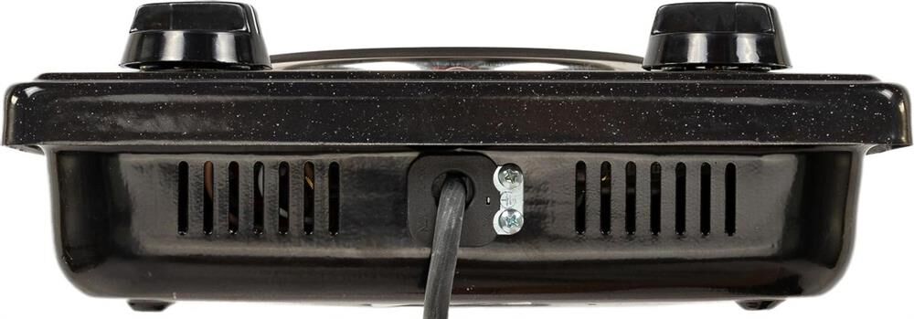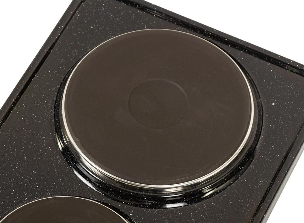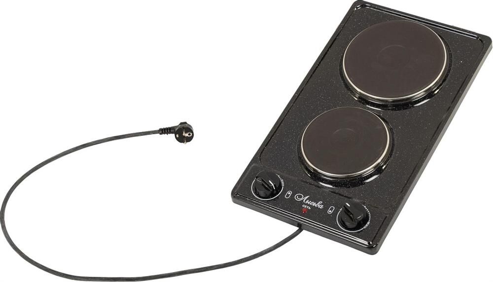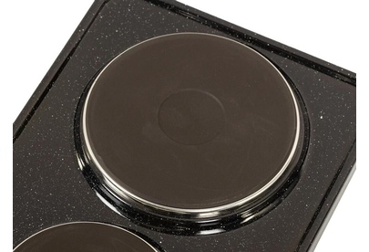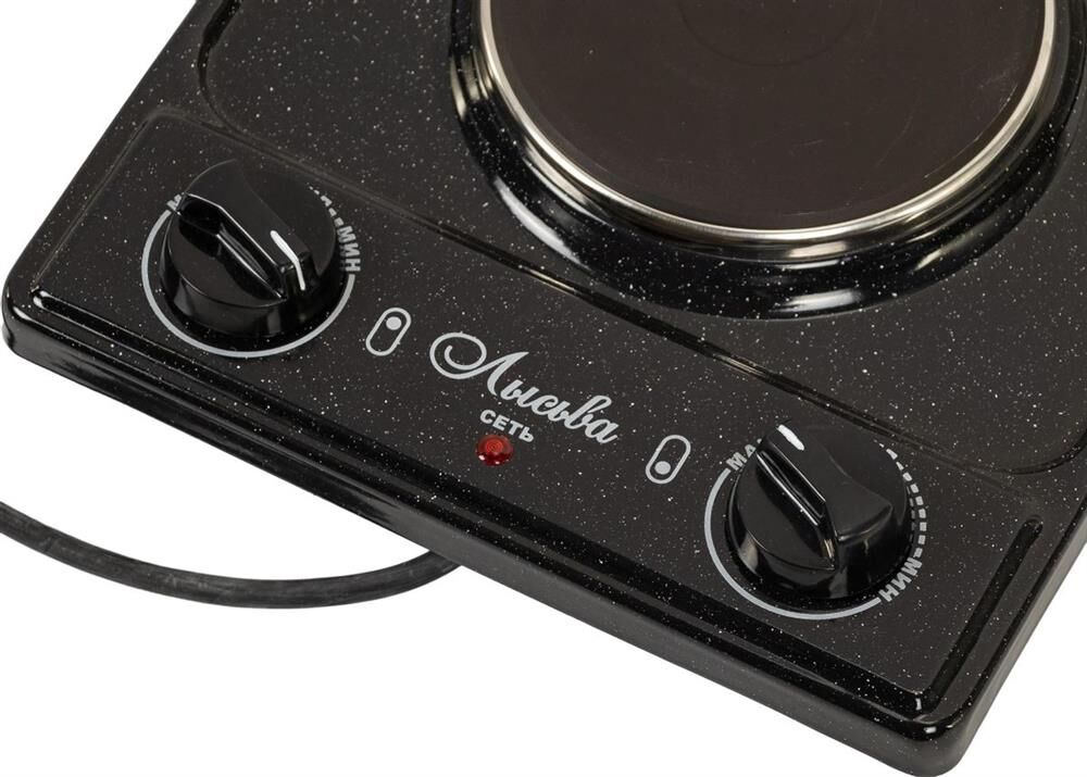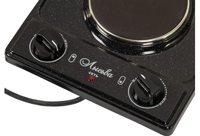 тип конфорок: чугунные, диаметр конфорок 14.5 см и 18 см, мощность конфорок: большой 1.5 кВт, малой 0.7 кВт, бесступенчатые переключатели, имеется индикатор подключения к сети, вес 4,8 кг