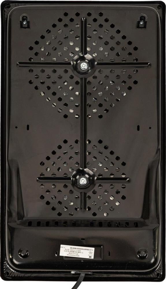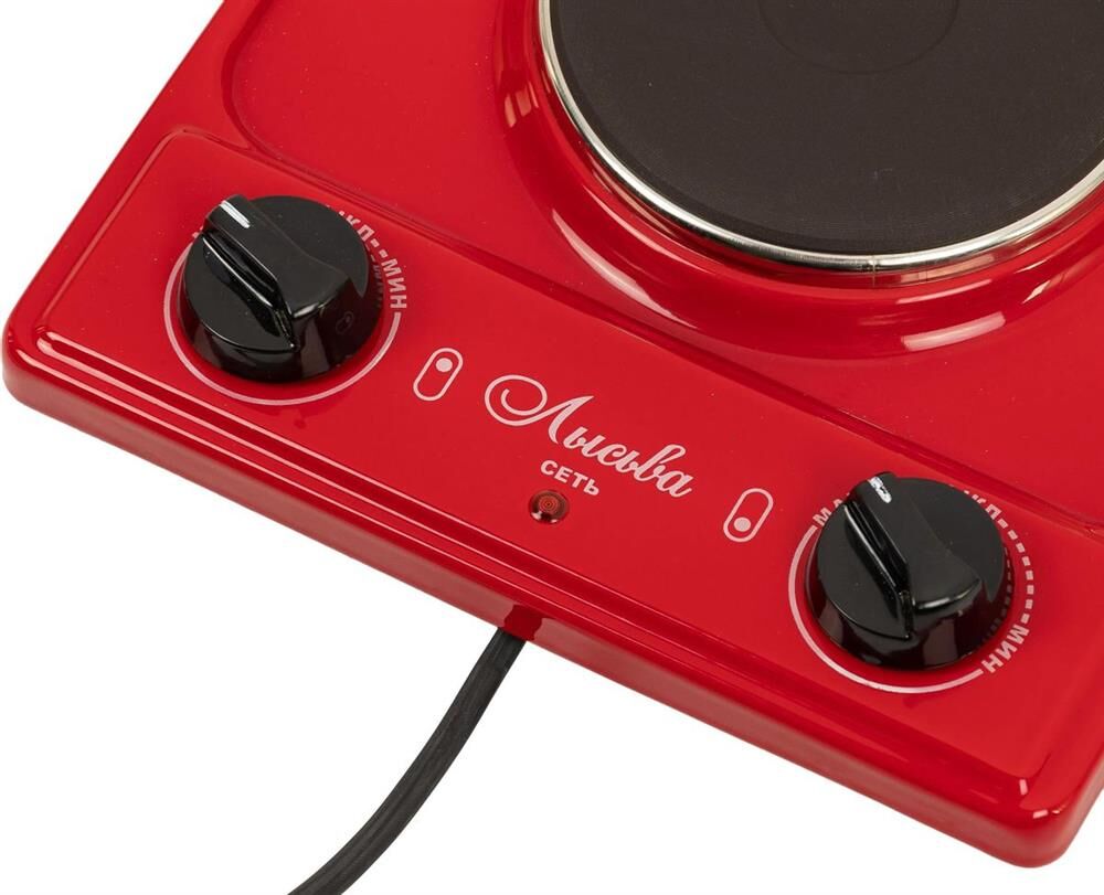тип конфорок: чугунные, диаметр конфорок 14.5 см и 18 см, мощность конфорок: большой 1.5 кВт, малой 0.7 кВт, бесступенчатые переключатели, имеется индикатор подключения к сети, вес 4,8 кг