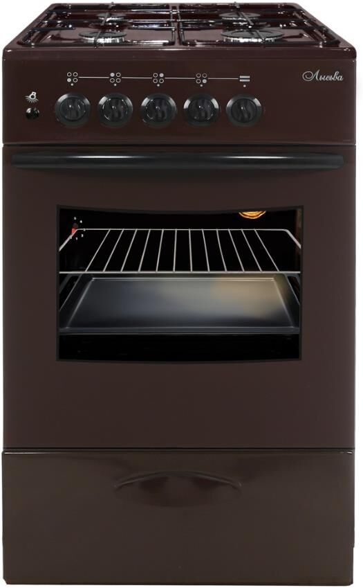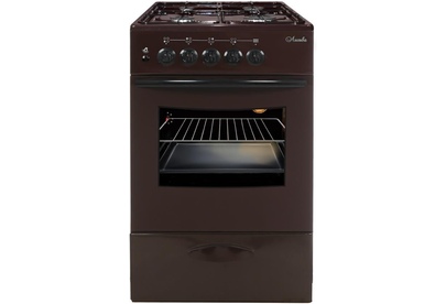 (ШхГхВ) 500х600х850 мм.Цвет коричневый.Масса нетто: 34 кг Газ: природный или сжиженный.Количество горелок: 4.Мощность передней левой горелки: 1.5 кВт Мощность передней правой горелки: 2.3 кВт.Мощность задней левой горелки: 1 кВт Мощность задней правой горелки: 1.5 кВт.Тип духовки: газовая.Мощность газовой горелки пода: 2.3 кВт.Объём жарочного шкафа — 57 л.Электророзжиг.Подсветка духовки.Дверца съёмная с двойным стеклом.Выдвижной ящик для хранения кухонных принадлежностей.Функция «газ-контроль» жарочного шкафа.Подставка для посуды малого диаметра.Стеклянный фасад выдвижного ящика для посуды