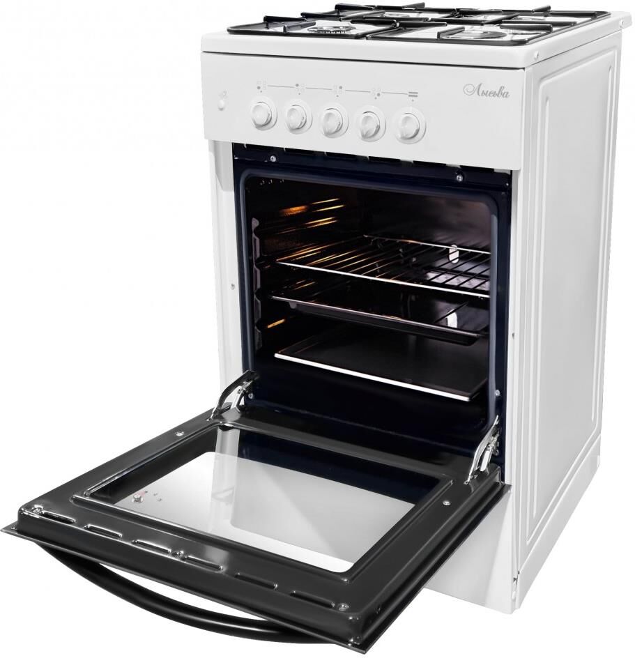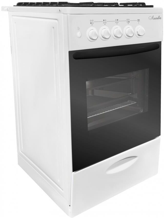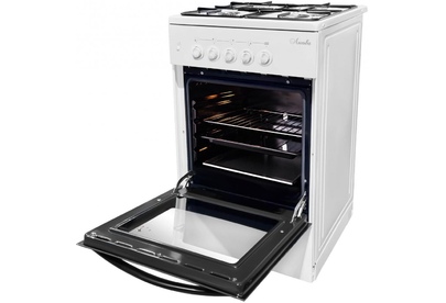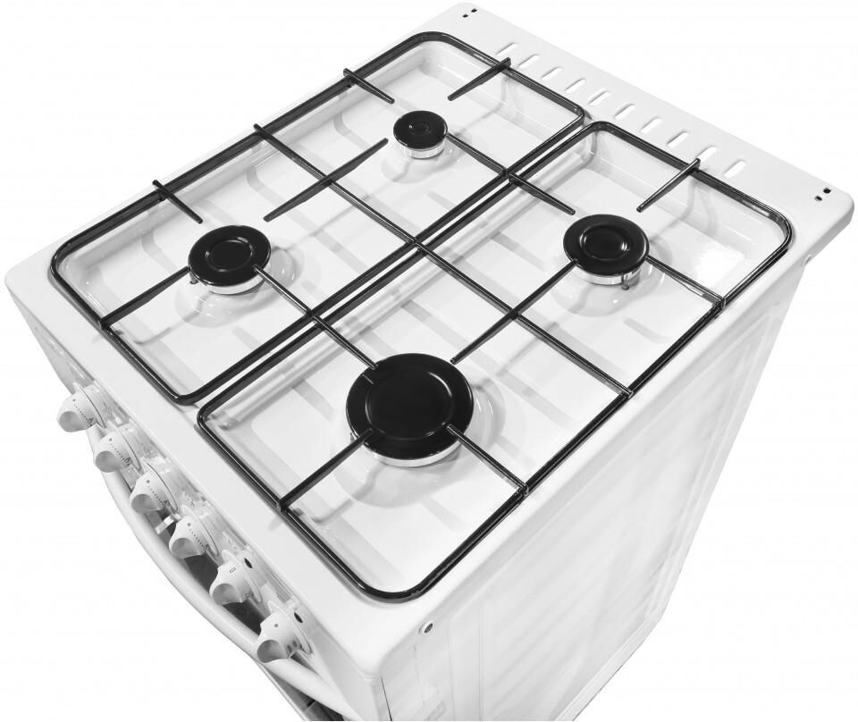 (ШхГхВ) 500х600х850 мм.Цвет белый.Масса нетто: 34 кг.Газ: природный или сжиженный.Количество горелок: 4.Мощность передней левой горелки: 1.5 кВт Мощность передней правой горелки: 2.3 кВт.Мощность задней левой горелки: 1 кВт Мощность задней правой горелки: 1.5 кВт.Тип духовки: газовая.Мощность газовой горелки пода: 2.3 кВт.Объём жарочного шкафа — 57 л.Электророзжиг.Подсветка духовки.Дверца съёмная с двойным стеклом.Выдвижной ящик для хранения кухонных принадлежностей.Функция «газ-контроль» жарочного шкафа.Подставка для посуды малого диаметра.Стеклянный фасад выдвижного ящика для посуды.
