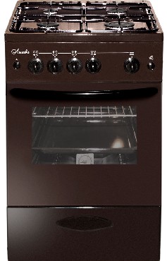 (ШхГхВ)500х600х850 мм.Цвет коричневый.Масса нетто: 34 кг Газ: природный или сжиженный Количество горелок: 4 Тип духовки: газовая Объём жарочного шкафа — 57 л.Крышка стола стеклянная.Подсветка духовки.Выдвижной ящик для хранения кухонных принадлежностей.Функция «газ-контроль» жарочного шкафа.Подставка для посуды малого диаметра.Дверца съёмная с двойным стеклом.Металлический фасад ящика.Стеклянная крышка.