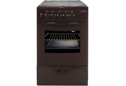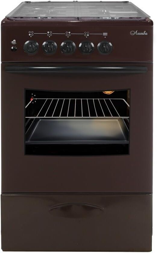 (ШхГхВ)500х600х850 мм.Цвет коричневый.Масса нетто: 34 кг Газ: природный или сжиженный Количество горелок: 4 Тип духовки: газовая Объём жарочного шкафа — 57 л.Крышка стола стеклянная.Подсветка духовки.Выдвижной ящик для хранения кухонных принадлежностей.Функция «газ-контроль» жарочного шкафа.Подставка для посуды малого диаметра.Дверца съёмная с двойным стеклом.Металлический фасад ящика.Стеклянная крышка.