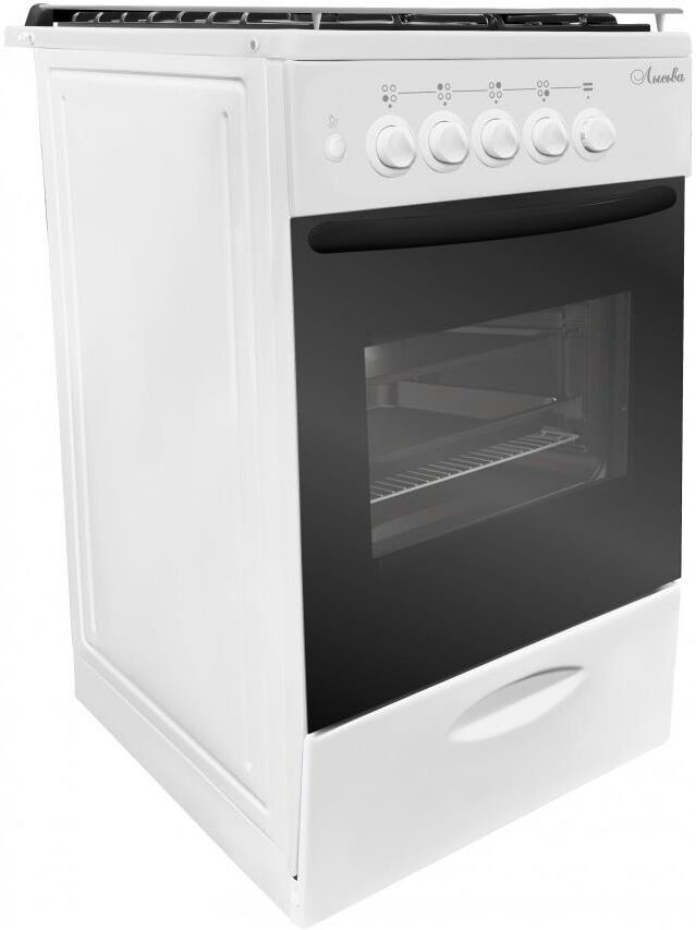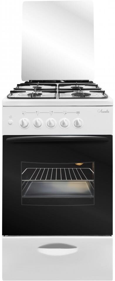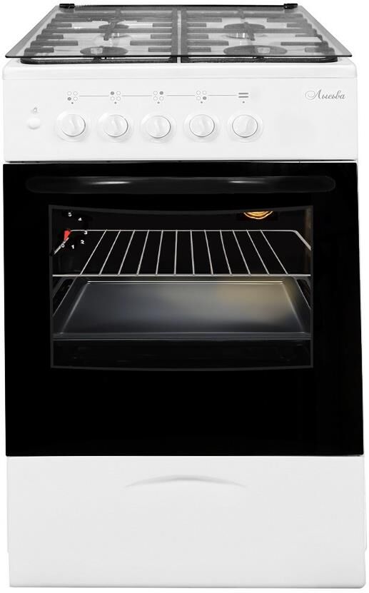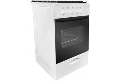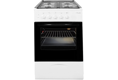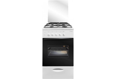 (ШxГxВ)50x60x85 см.Цвет белый.Управление механическое, переключатели: поворотные.Духовка газовая.Варочная панель газовая.Количество конфорок газовых: 4, быстрого разогрева: 1.Объем духовки 60 л.Рабочая поверхность эмаль.Дверца откидная.Очистка традиционная.Газ-контроль духовки.Стеклянная крышка.