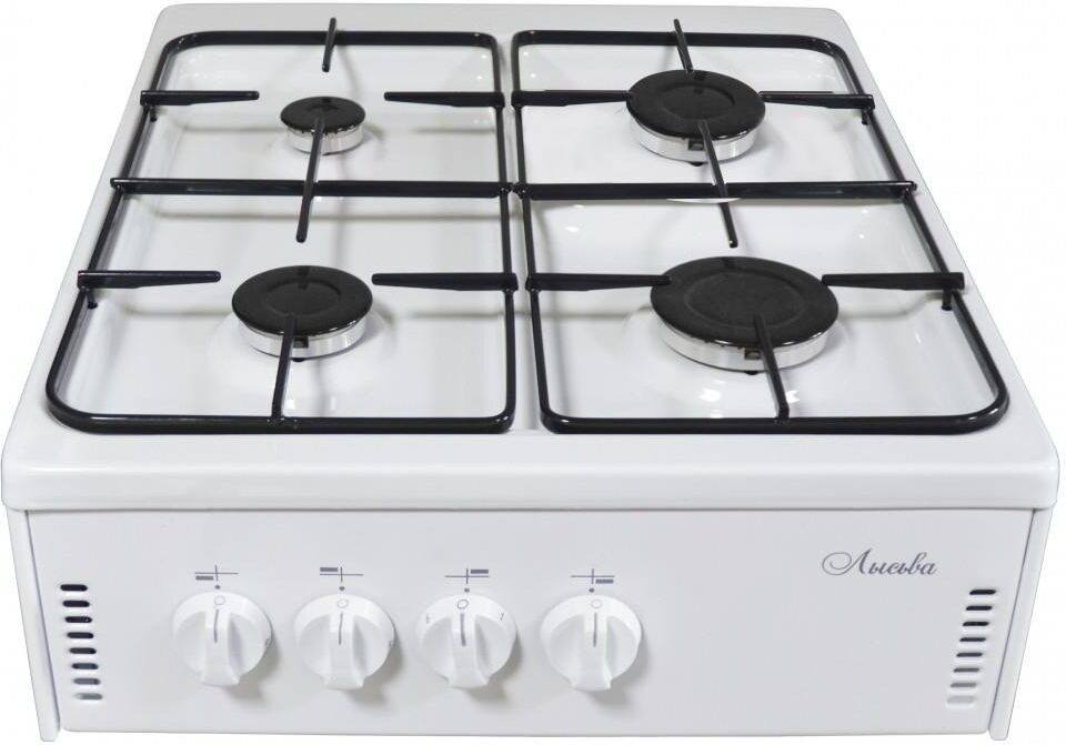 (ШхГхВ) 500х600х840±5 мм.Цвет белый.Установленная мощность: 6.3 кВт Масса нетто: 9 кг.Газ: природный или сжиженный.Количество горелок: 4.Мощность передней левой горелки: 1.5 кВт.Мощность передней правой горелки: 2.3кВт. Мощность задней левой горелки: 1 кВт.Мощность задней правой горелки: 1.5 кВт Тип духовки: газовая.Объём жарочного шкафа — 57 л.Функция «газ-контроль» жарочного шкафа.Подставка для посуды малого диаметра.Плита комплектуются одним противнем и одной решеткой духовки.