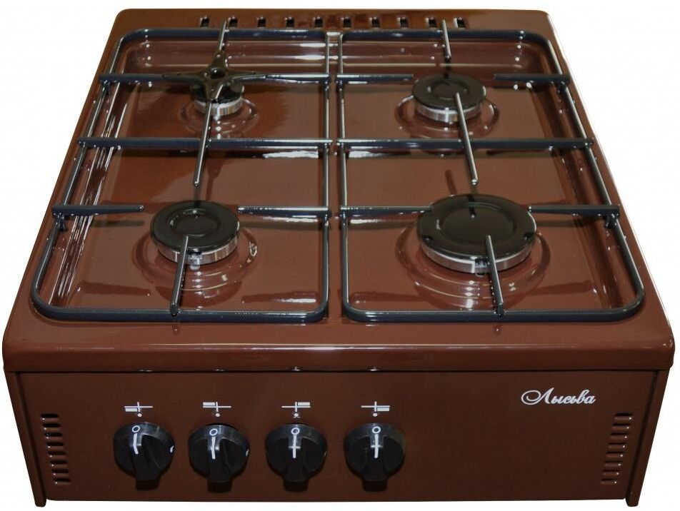 (ШхГхВ) 500х600х840±5 мм.Цвет коричевый.Установленная мощность: 6.3 кВт Масса нетто: 9 кг Газ: природный или сжиженный Количество горелок: 4 Мощность передней левой горелки: 1.5 кВт Мощность передней правой горелки: 2.3 кВт Мощность задней левой горелки: 1 кВт Мощность задней правой горелки: 1.5 кВт Тип духовки: газовая Объём жарочного шкафа — 57 л Функция «газ-контроль» жарочного шкафа Подставка для посуды малого диаметра Плита комплектуются одним противнем и одной решеткой духовки.
