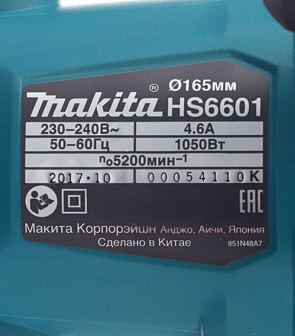 MAKITA Циркулярная пила HS6601, 165мм