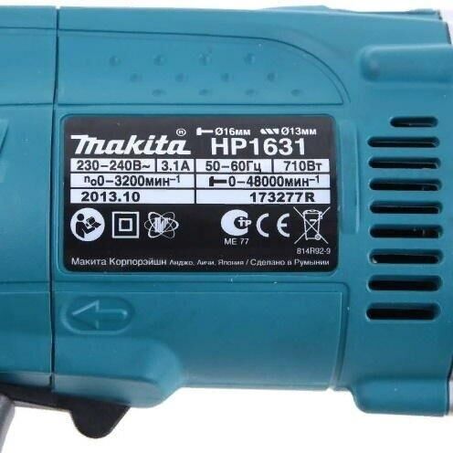 MAKITA Дрель ударная HP1631K 710Вт патрон:быстрозажимной реверс (кейс в комплекте)