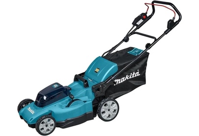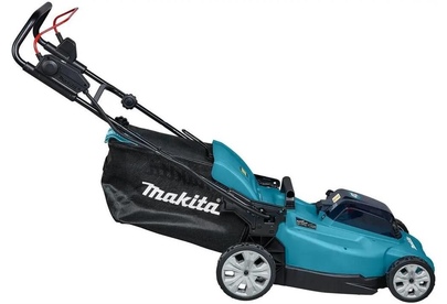 Тип двигателя: электрический. Мощность двигателя: 860. Режущая система: нож. Ширина скашивания: 48. Система регулировки высоты скашивания: 10 уровней, центральная. Тип выброса травы: в травосборник. Тип травосборника: мягкий с жестким верхом. Объем травосборника: 62. Количество колес: четырехколесная. Емкость аккумулятора: 5. Напряжение аккумулятора: 18. Вес товара: 25.5. Комплект поставки: газонокосилка, нож, травосборник, заглушка для мульчирования, 2АКБ по 5 АЧ, двухпортовое зарядное устройство Makita DC18SH. Тип передвижения: несамоходное. Рекомендуемая площадь скашивания: 800. Аккумулятор в комплекте: есть. Зарядное устройство в комплекте: есть. Габариты упаковки (ед) ДхШхВ: 0.95x0.57x0.506. Вес упаковки (ед): 23. Количество аккумуляторов в комплекте: 2. Гарантия: 12 мес.. Высота скашивания: 20 - 100 мм. Особенности устройства: индикатор заполнения травосборника, мульчирование, регулировка высоты скашивания, ручки для транспортировки, складная ручка. Двигатель: электрический, 860 Вт. Режущая система: нож