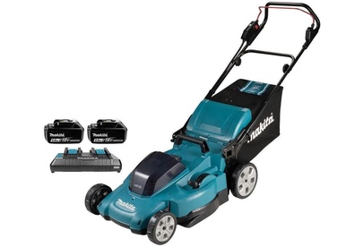 Тип двигателя: электрический. Мощность двигателя: 860. Режущая система: нож. Ширина скашивания: 53. Система регулировки высоты скашивания: 10 уровней, центральная. Тип выброса травы: задний выброс. Тип травосборника: мягкий с жестким верхом. Объем травосборника: 70. Количество колес: четырехколесная. Емкость аккумулятора: 5. Напряжение аккумулятора: 36. Вес товара: 25.5. Комплект поставки: газонокосилка, нож, травосборник, заглушка для мульчирования, два аккумулятора BL1850 18V 5 Ач, зарядное устройство Makita DC18SH ?. Тип передвижения: несамоходное. Рекомендуемая площадь скашивания: 800. Аккумулятор в комплекте: есть. Зарядное устройство в комплекте: есть. Габариты упаковки (ед) ДхШхВ: 1.01x0.615x0.475. Вес упаковки (ед): 23. Гарантия: 12 мес.. Высота скашивания: 20 - 100 мм. Особенности устройства: индикатор заполнения травосборника, мульчирование, регулировка высоты скашивания, складная ручка. Выброс травы: задний выброс. Вес: 25.5 кг. Объем травосборника: 70 л. Двигатель: электрический, 860 Вт. Режущая с