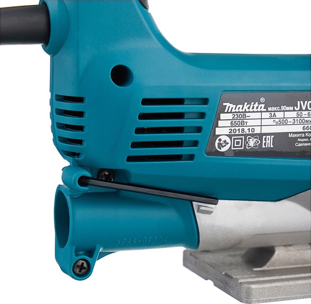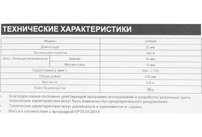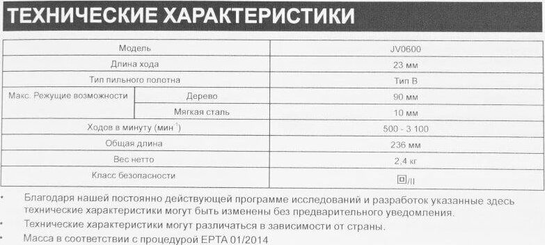 Мощность: 650. Длина хода: 23. Глубина резания (дерево): 90. Глубина резания (сталь): 10. Маятниковое движение: есть. Тип маятникого движения: 4-х ступенчатое. Регулировка хода колебаний: нет. Регулировка положения опорной плиты: нет. Замена режущего полотна без инструмента: есть. Встроенная подсветка: нет. Встроенный лазерный маркер: нет. Встроенный пылесборник: нет. Возможность подключения пылесоса: есть. Функция сдува опилок: есть. Встроенный отсек для хранения полотен: нет. Противоударный корпус: нет. Жесткий кейс в комплекте: есть. Длина сетевого кабеля: 2.5. Длина инструмента: 236. Высота инструмента: 199. Вес товара: 2.4. Комплект поставки: Лобзик, ключ, кейс.. Тип электропитания: от электросети. Габариты упаковки (ед) ДхШхВ: 0.335x0.108x0.34. Вес упаковки (ед): 5. Страна производства: Китай. Гарантия: 12 мес.. Число ходов: 500 - 3100 ход/мин. Тип электропитания: от электросети. Вес: 2.4 кг. Глубина пропила: дерево 90 мм, сталь 10 мм. Особенности: маятниковое движение, функция сдува опилок, кейс в комп