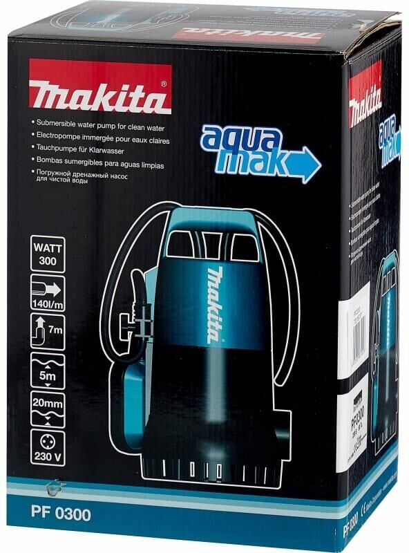 MAKITA Насос дренажный PF0300, центробежный, погружной, 8400л/ч