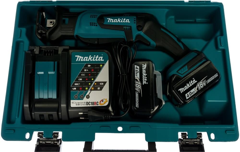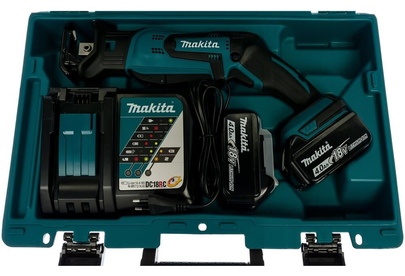 Тип: Сабельная пила. Длина хода пилы: 13. Глубина пропила (древесина): 50. Глубина пропила (металл): 50. Тип электропитания: от аккумулятора. Тип аккумулятора: Li-Ion. Емкость аккумулятора: 4. Напряжение аккумулятора: 18. Встроенная подсветка: есть. Вес товара: 1.5. Особенности: Благодаря легкому весу и компактным размерам пила может использоваться для работ в труднодоступных местах. Пила имеет подсветку рабочей зоны и два включателя для удобного хвата в любом положении. Подходят два типа пилок: для сабельных пил и для лобзиков.. Зарядное устройство в комплекте: есть. Габариты упаковки (ед) ДхШхВ: 0.48x0.14x0.32. Вес упаковки (ед): 2.5. Комплект поставки: Кейс, зарядное устройство, 2 аккумулятора 4.0Ач.. Тип электрического двигателя: щеточный. Индикатор заряда батареи: есть. Количество аккумуляторов в комплекте: 2. Наименование аккумуляторной платформы: Makita LXT. Является частью аккумуляторной платформы: да. Гарантия: 12 мес.. Число ходов: 3000 ход/мин.. Размеры товара (ДхШхВ): 81х398х220 мм. Функциональные