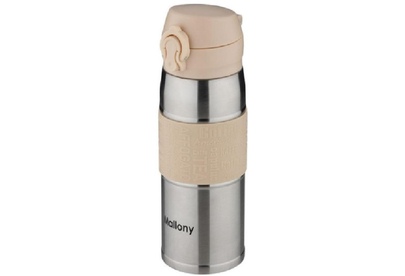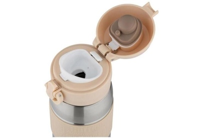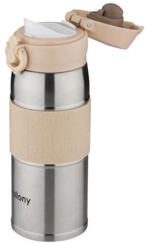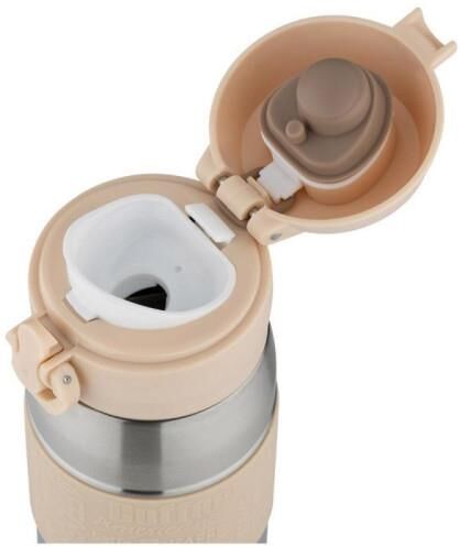 Термокружка Цвет: бежевый Силиконовая вставка на корпусе, силиконовая крышка Эргономичный дизайн крышки позволяет легко открывать её одной рукой Термокружка имеет оптимальный размер. Её удобно держать в руке Плотно закрывающаяся крышка позволит надолго сохранить температуру напитка, специальный фиксатор не позволит крышке случайно открыться. Объем: 350 мл Двойные вакуумные стенки из нержавеющей стали Материал: нержавеющая сталь (201), силикон, полипропилен