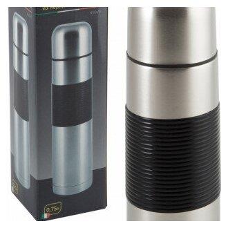 Емкость 0,75 л. Материал: корпус – нержавеющая сталь с силиконовыми вставками, колба – нержавеющая сталь s/s 201, полипропилен. - Колба из нерж стали с двойными стенками. - Герметичный клапан (пробка) с кнопкой - Ширина горлышка 5 см Термос предназначен для хранения горячих и холодных напитков, супов и других жидкостей. Укомплектован пробкой с кнопкой. Такая пробка удобна в использовании и позволяет, не отвинчивая ее, наливать напитки после простого нажатия. Термос оснащен крышкой-чашкой. Упаковка: цветная коробка