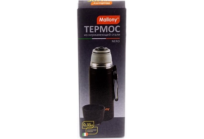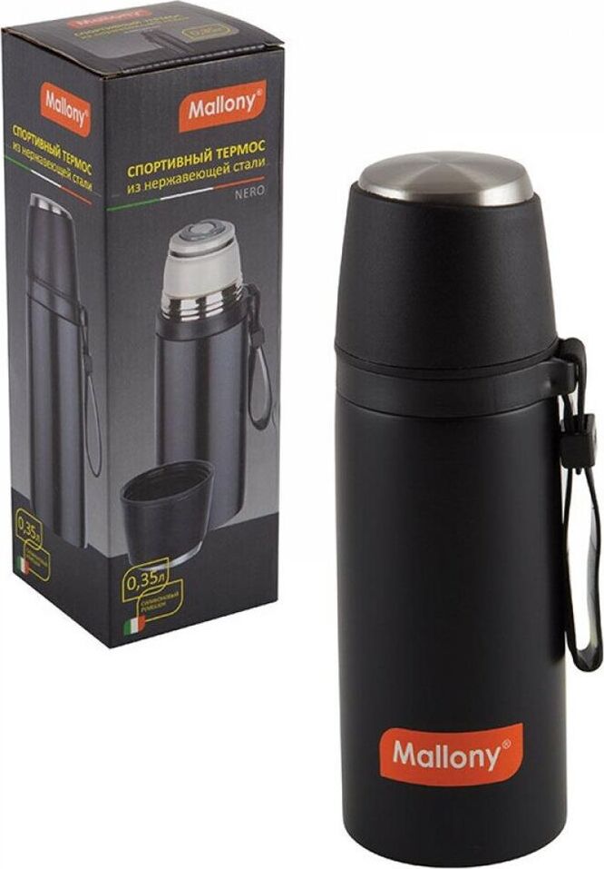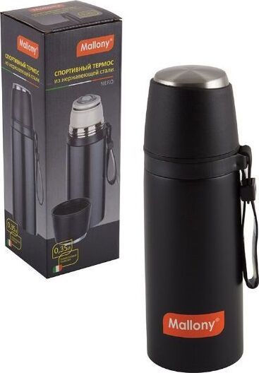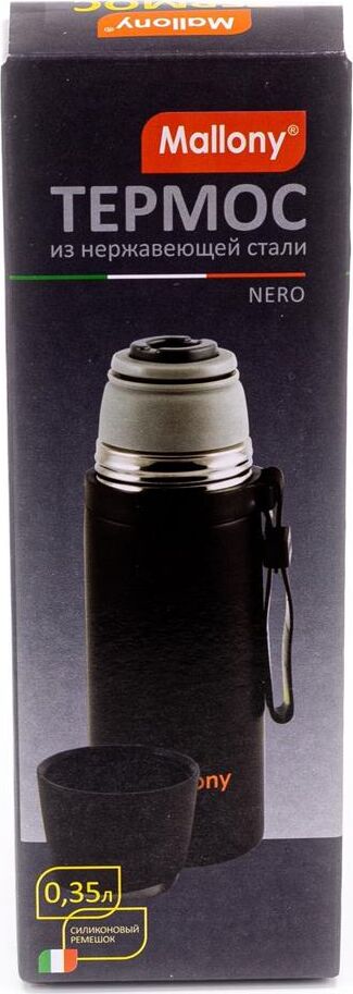 MALLONY Термос с чашкой и силиконовым ремешком NERO, 0,35 л (005241)