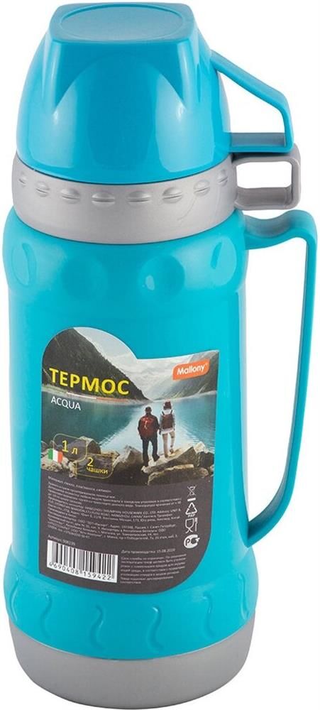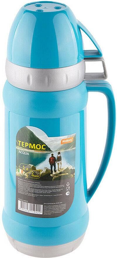 MALLONY Термос в пластиковом корпусе со стеклянной колбой ACQUA, 1,0 л (2 чашки) (008239)