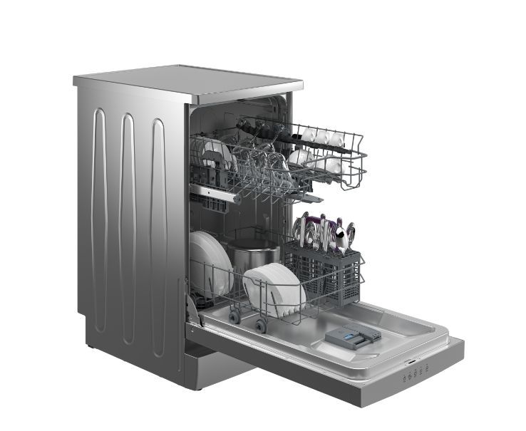 (ВхШхГ)85х44,8х60см. Цвет серебристый.Максимальная загрузка (комплекты посуды), шт.10.Количество программ 5.Дисплей LED.Отложенный старт, ч 0-19. Класс сушки A.Система защиты от протечек Overflow Safety.Тип сушки Конденсационная.Фильтр Частично металлический.Температурные режимы, ° С 35-50-65-70.