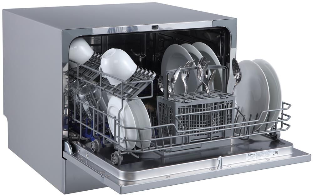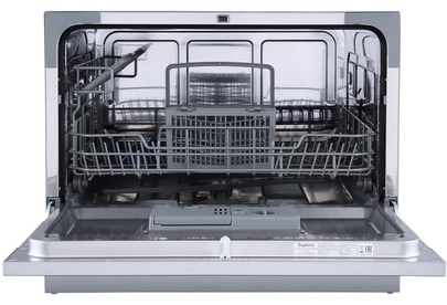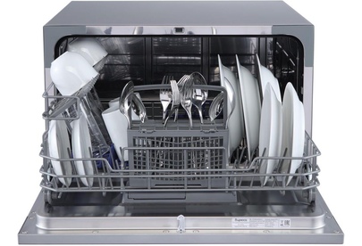 Компактная настольная посудомоечная машина расчитана на 6 комплектов. Отсрочка запуска 1-24ч. LED-дисплей. LED-индикация. Класс А+. 7 программ: интенсив, ECO, обычная, стекло, 90 минут, быстрая, детская посуда. Расход воды за цикл 6л. Энергопотребление за цикл 0,23 кВт*ч. Габариты ВхШхГ: 43,8x55x50 см.