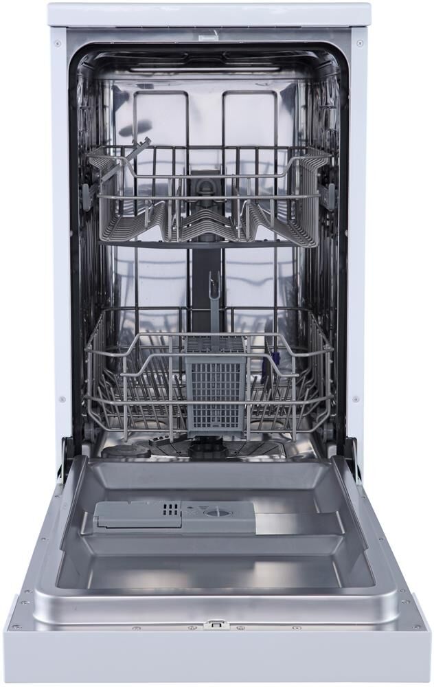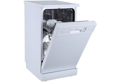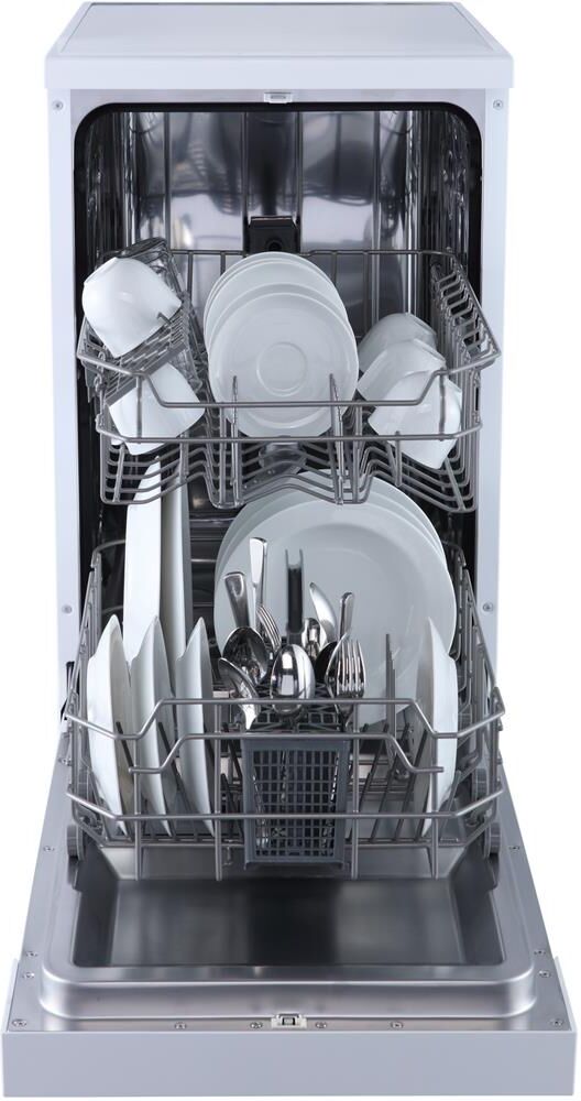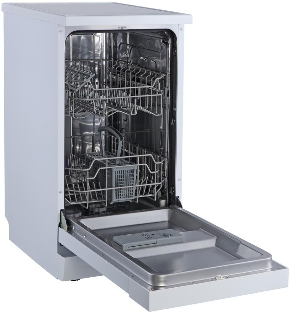 Отдельностоящая посудомоечная машина расчитана на 9 комплектов. Отсрочка запуска 3/6/9ч. LED-индикация. Блокировка от детей. Класс А+. Режим 1/2 загрузки. 6 программ: интенсив, ECO, обычная, стекло, 90 минут, быстрая. Регулируемая по высоте корзина. Расход воды за цикл 10л. Энергопотребление за цикл 0,7 кВт*ч. Габариты ВхШхГ: 84,5x44,8x60см.