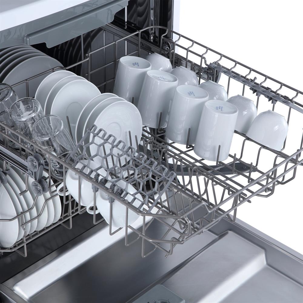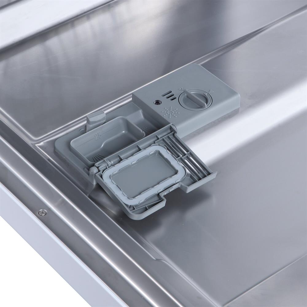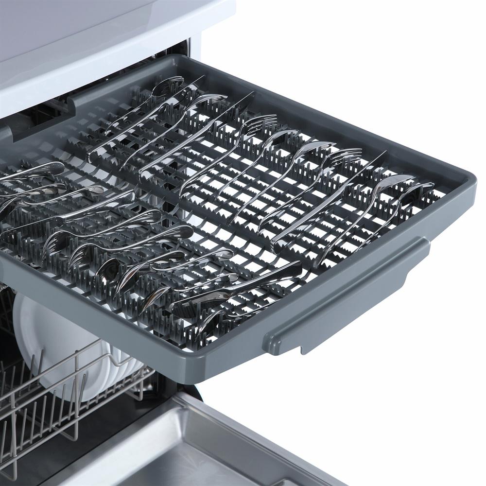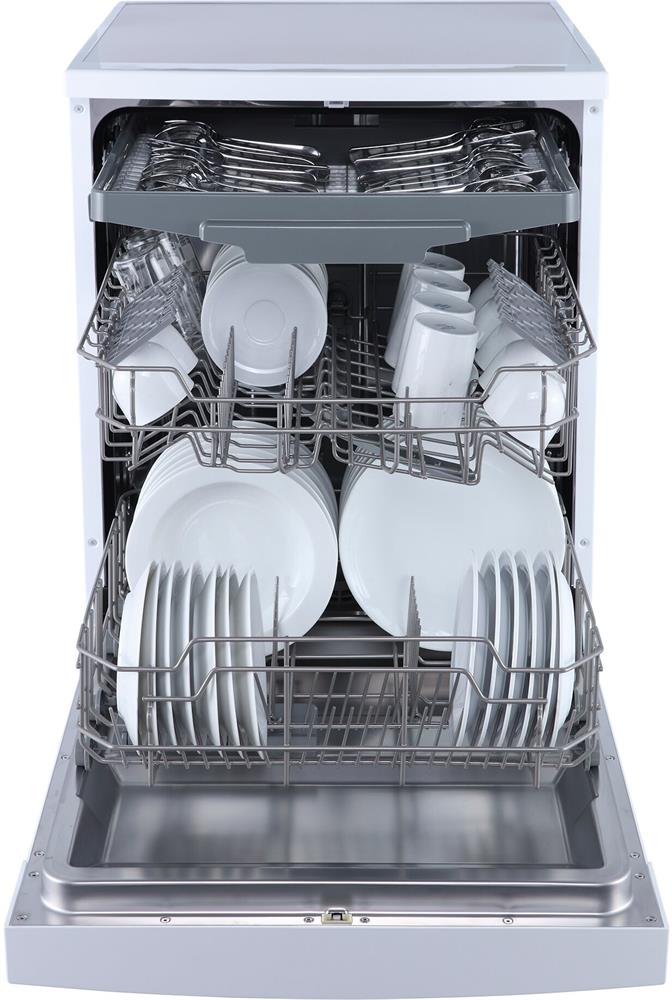 Отдельностоящая, 62,8см, 14 комплектов посуды, кол-во корзин - 2 для посуды,1 для столов.приборов, А++, LED дисплей, таймер отсрочки запуска 1-24 ч, кол-во программ - 8: интенсивная, обычная, автоматическая, ополаскивание, ЭКО, стекло, 90 минут, быстрая, тип сушки - конденсационная, расход воды за цикл - 10л., выбор работы разбрызгивателей, макс.уровень шума - 49 дБ