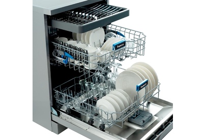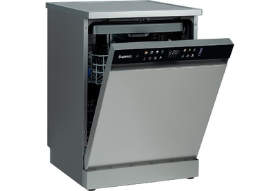 Инверторная полноразмерная посудомоечная машина с цветным сенсорным дисплеем • цвет Нержавеющая сталь • вместимость 15 комплектов посуды • габариты 84,5x59,8x59,8 см • расход воды - 10 л • энергопотребление за цикл — 0,65 кВт*ч • 8 программ • автооткрывание дверцы • отсрочка запуска - 1-24ч • корзины — 3 шт