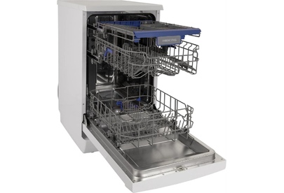 Загрузка 10 комплектов посуды, 3 корзины, Уровень шума 49db, Зонированная мойка, 24 Часа Отсрочки старта, LED Индикация, Цвет: Белый, 8 Программ: Интенсивная, Стандартная, Эко, Стекло, Экспресс -1 ч, 90Минут, Быстрая, Замачивание, Габариты изделия (Ш*Г*В)44,8х60х84,5см.