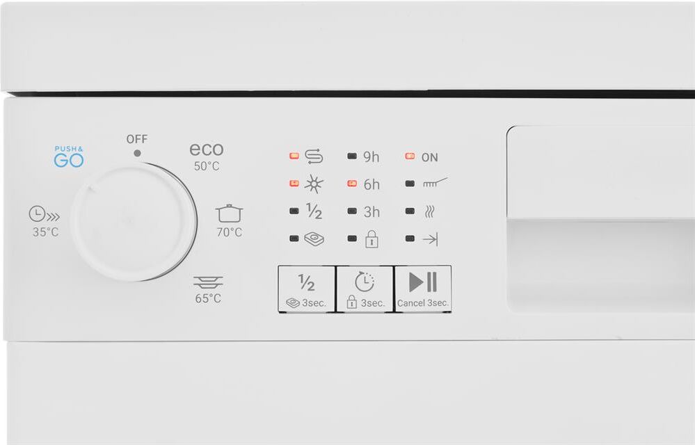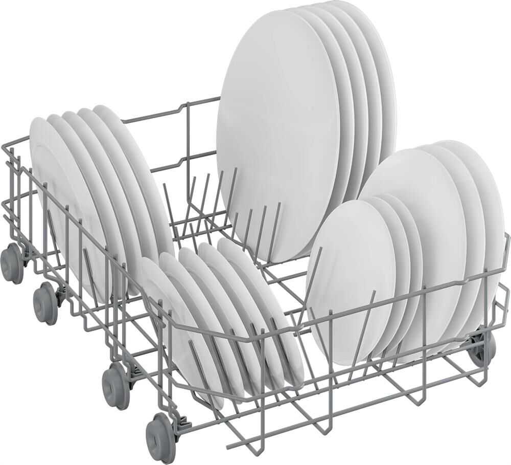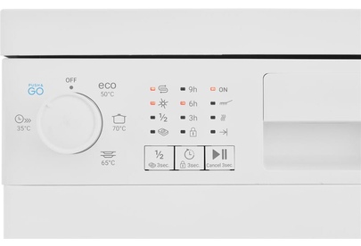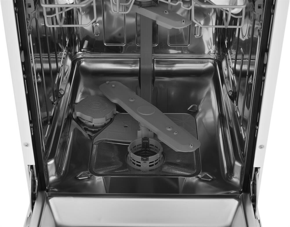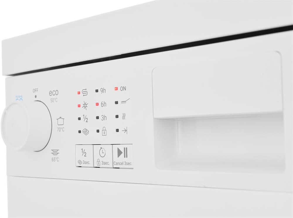 9 комплектов посуды, 5 программ мойки, 3 корзина, уровень шума 55 дБ, стандартный мотор, частичная защита от протечек Overflow Safety, половинная загрузка, управление поворотным механизмом, LED дисплей