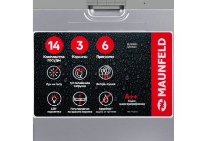 Посудомоечная машина Maunfeld MLP60230 Light Beam - это надежное и функциональное устройство, произведенное в Китае. Стильный дизайн машины, выполненный в белом цвете с черной панелью управления, идеально впишется в любой современный интерьер. Компактные размеры устройства (81,5 см в высоту, 59,8 см в ширину и 55 см в глубину) позволяют легко интегрировать его в любой кухонный гарнитур. Устройство отличается высокой вместительностью: оно способно одновременно помыть до 14 комплектов посуды. При этом, благодаря функции половинной загрузки, машина эффективно работает и при меньшем количестве посуды, что позволяет экономить воду и электроэнергию. Посудомоечная машина Maunfeld MLP60230 Light Beam оснащена конденсационной системой сушки, которая обеспечивает идеально сухую и блестящую посуду после каждого цикла мытья. Класс энергопотребления A++ гарантирует экономичность использования устройства, а класс сушки A обеспечивает высокое качество сушки. Машина оснащена удобной и интуитивно понят