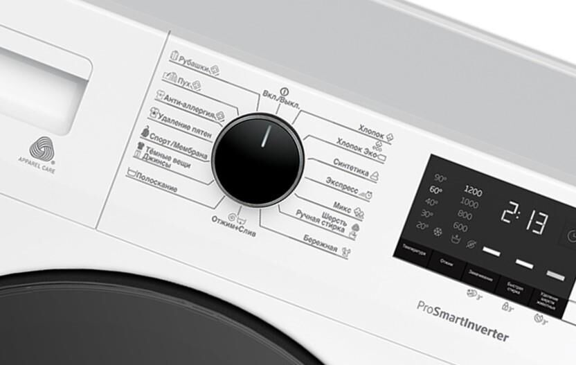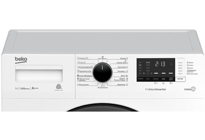 (ВхШхГ)84х60х45см.Цвет белый.Класс энергопотребления A -20%.Максимальная загрузка 7 кг.Максимальная скорость отжима 1200 об/мин.Класс отжима В Потребление электроэнергии 1.05 кВт.Расход воды 52 л.Уровень шума при стирке 63 дБ(А).Количество программ стирки 15.Дисплей Цифровой дисплей.Отложенный старт 0-19 ч.Обратный отсчет/Индикация времени до конца цикла.Сигнал окончания стирки.Блокировка от случайного нажатия/Защита от детей.Регулируемая скорость отжима 1200/1000/800/600.Электронный контроль дисбаланса.Инверторный мотор ProSmart .Технология обработки паром SteamCure.