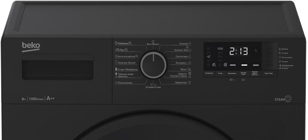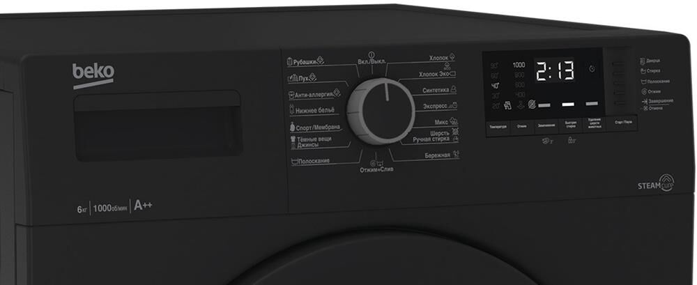 (ВхШхГ)84х60х41,5см.Цвет антрацит.Максимальная загрузка 6 кг.Максимальная скорость отжима 1000 об/мин.Класс отжима C.Потребление электроэнергии 0.94 кВт.Расход воды 47.5 л.Уровень шума при стирке 61 дБ(А).Количество программ стирки 15.Дисплей Цифровой.Отложенный старт 0-19 ч.Обратный отсчет/Индикация времени до конца цикла.Сигнал окончания стирки.Блокировка от случайного нажатия/Защита от детей.Электронный контроль дисбаланса. Технология обработки паром SteamCure.Нагревательный элемент Hi-Tech с защитой от накипи.Контроль пенообразования.Вес 55 кг