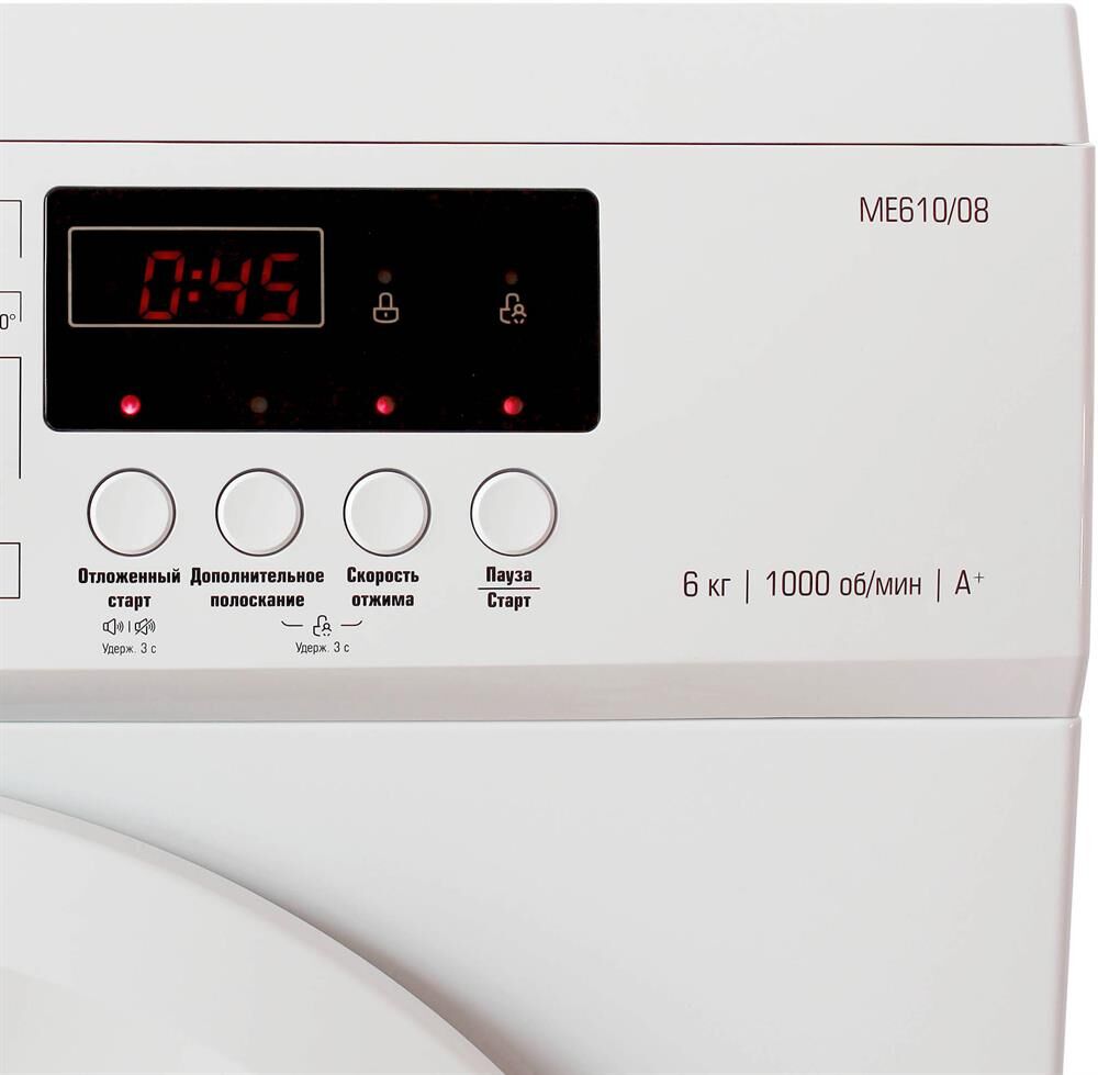 Загрузка: 6кг, Максимальный отжим, об/мин: 1000,Кол-во программ: 23, LED индикация, Отложенный старт, ч: 0-24, Экспресс стирка: 15,30,45, Диаметр люка: 30 Габариты: 85*59,5*40, расход воды: 38, Масса: 52кг.