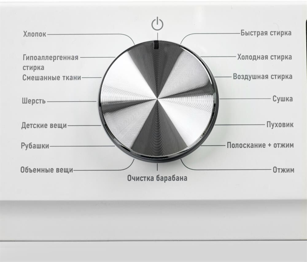 выбор скорости отжима, контроль баланса, очистка барабана, сигнал окончания стирки