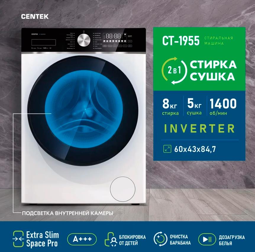 Машина стиральная фронтальная CENTEK CT-1956 (серый)